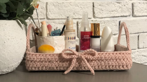 Милая корзинка-косметичка из коробки и остатков пряжи в подарок