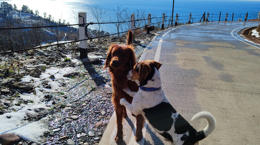 Собака радуется первому и последнему снегу в Батуми 14.02.2023г