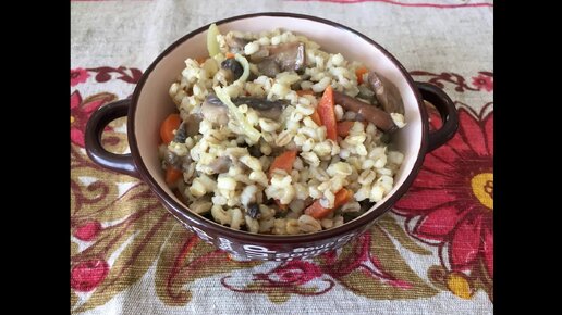 Русский плов из перловки и грибов. Постное блюдо.