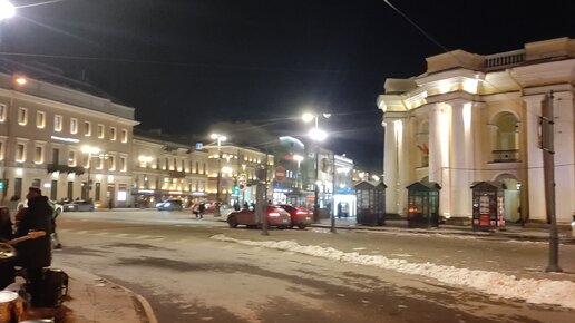 Под башней с часами на Думской улице в Санкт-Петербурге готовятся к своему выступлению уличные музыканты из группы "Айдахо"...