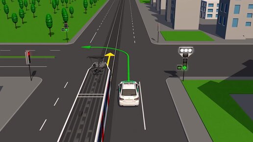 Почему трамвай уступает, несмотря на то, что автомобиль поворачивает