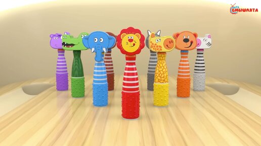 Учим ЦВЕТА и ЗВУКИ животных - / боулинг| Видео для малышей | Детский развивающий мультик 1+