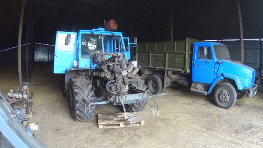 Демонтаж двигателя ЯМЗ-236 с Т-150К-09. Замена масла на ХТЗ-17221.
