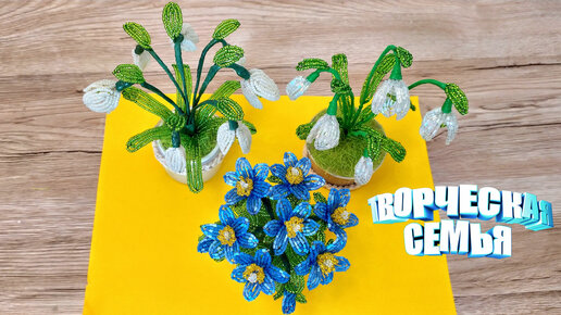 Цветы из бисера "Белые Подснежники"✔️Бисероплетение, подробный МК