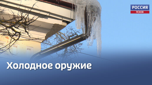 Поход по тротуару сродни русской рулетке. В Пскове борются с сосульками и наледью на крыше