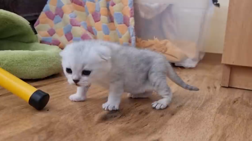 У котёнка слабые лапки и большой живот ему тяжело учиться ходить 😔