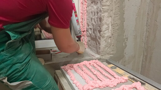 Утепление и пароизоляция оконных откосов в ванной комнате под облицовку керамической плиткой. Приклеиваем ЭППС Техноплэкс, на клей-пену CT84