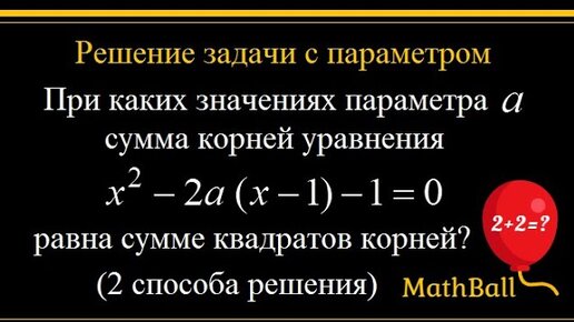 №3 Решение задачи с параметром x^2-2a(x-1)-1=0 (2 способа) ЕГЭ по математике с MathBall.