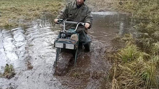 Полноприводный мотоцикл застрял в болоте