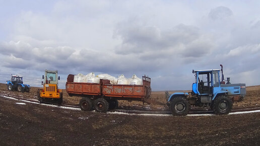 Поездка на ХТЗ-17221 в поле для эвакуации застрявшего Т-150К-09-25 на внесении удобрений.