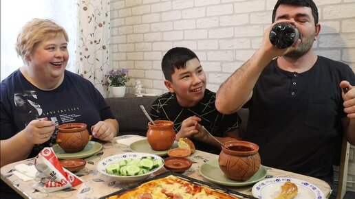 Мукбанг/овощи с мясом в горшочке/домашняя пицца/