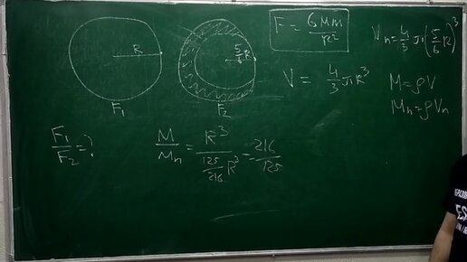 Имеется шар массой М и радиусом R и материальная точка массой m. Во сколько раз уменьшится сила тяготения между ними, если в шаре сделать
