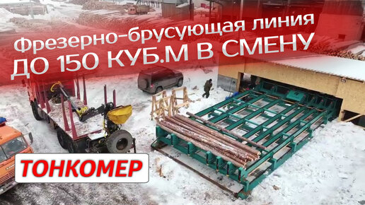 Фрезерно-брусующая линия производительностью до 150 куб.м в смену тонкомера