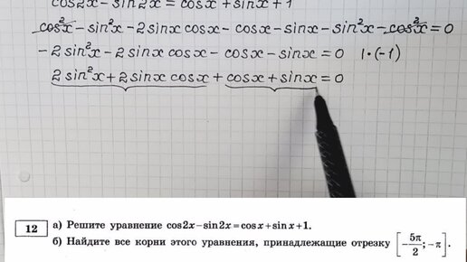 Рассматриваем решение уравнения из 2 части профильного ЕГЭ по математике.