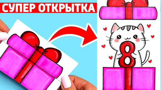 СУПЕР ОТКРЫТКА на 8 МАРТА | Как сделать открытку на 8 Марта простым способом | Рисунки на 8 Марта
