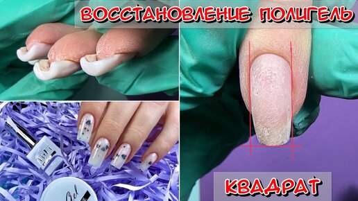 Восстановление ногтей полигелем / Форма ногтей квадрат / Как работать полигелем / Пошаговая инструкция работы с полигелем для новичков /