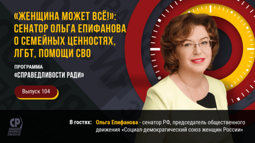 Женщина может всё: Сенатор Ольга Епифанова о семейных ценностях, лгбт, помощи СВО.