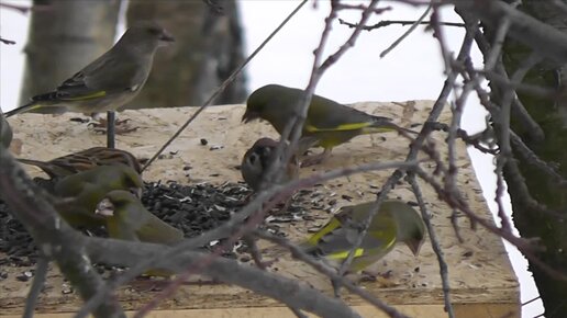 И снова здорово . Снова зеленушки на кормушке. Уже слышны весенние трели.