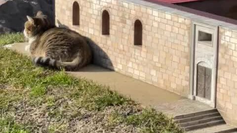 Гигантский кот у входа в мечеть