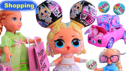 Shopping for LOL Surprises + Blind Bags! + Dress Up for Elsa and Anna Toddlers. Video for Kids
