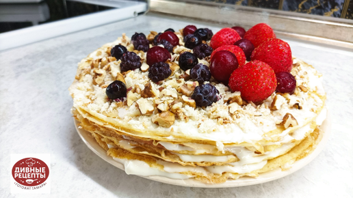 Шикарный Блинный Торт. Блинный торт-пирог с ореховой посыпкой Сливочно-творожный крем. Очень вкусный