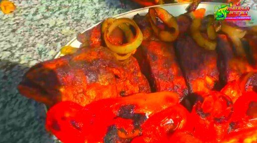Горбуша в сметане, жареная на садже с овощами!(перезалив)