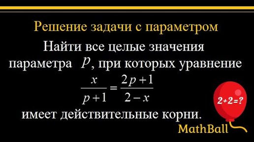 №4 Решение задачи с параметром x/(p+1)=(2p+1)/(2-x) подготовка к ЕГЭ по математике с MathBall.
