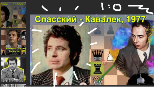 Борис Спасский громит Любомира Кавалека - смотрим, радуемся за нашего гения, что в 38 ходов свел "на нет" всю сицилианскую защиту (1977, 1-0