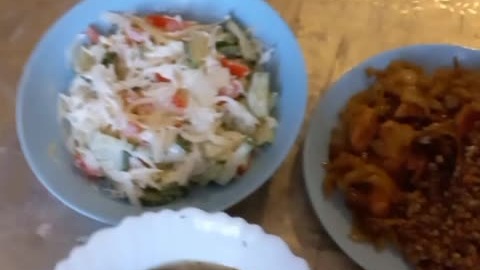 Капуста с мясом, куриный суп и овощной салат 🥗