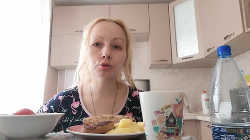 Пюре, котлетка, маринованная помидорка на ужин! Вечерний мукбанг :) Вкусно и просто! Весна, лето, белые ночи...