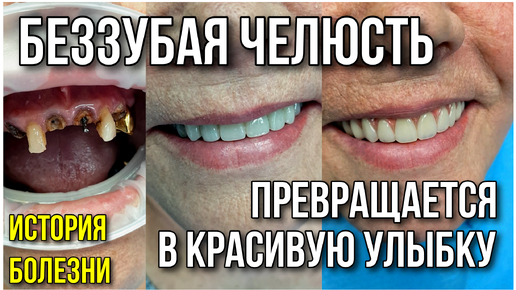 Беззубая челюсть превращается в красивую улыбку.