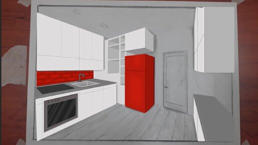 Как нарисовать холодильник и кухню в мультяшном стиле.