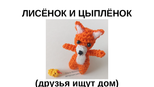 Лисенок и цыпленок (игрушки, связанные крючком в технике амигуруми, ищут дом)
