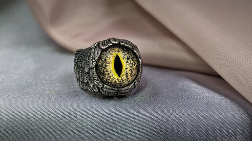 Кольцо крылья Ангела с глазом крокодила аллигатора авторское украшение ручной работы