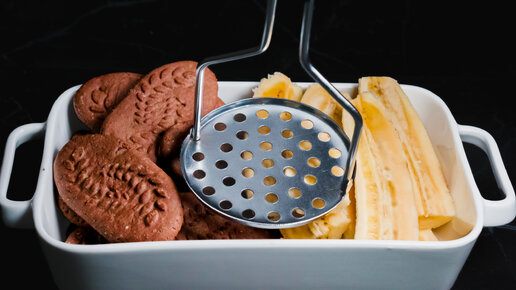 Раздавил банан и шоколадное печенье и получил необычный десерт. Трачу на приготовление всего 5 минут и духовку не включаю