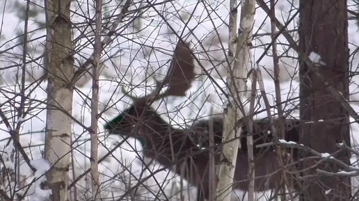 Снежная зима. В лесу олени, дятел и другие животные