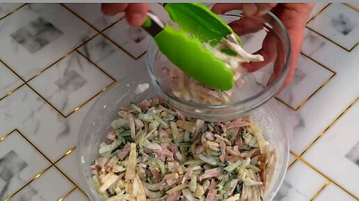 Если такой салат подавать, как самостоятельное блюдо.... Салат с кальмарами и ветчиной.