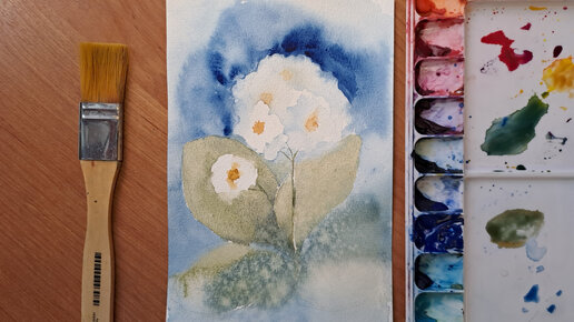 Рисую белые цветочки акварелью, примулы. Акварель для начинающих.