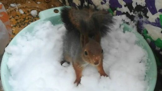 Будни домашней БЕЛКИ. Кушает ТЫКВУ, моется в снегу.