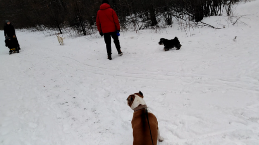 Встретили с амстаффом цвергшнауцера и просто собаку