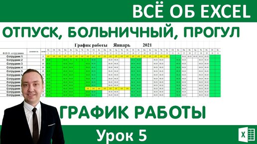 График работы. Добавляем на график отпуск, больничные дни, не выходы на работу.