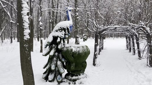 Жанровая скульптура Павлин в химкинском парке Дубки