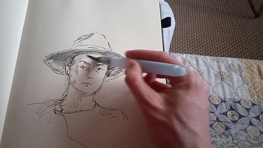 Автопортрет художника. Линер и водяная кисть