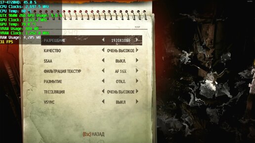 Тест ноутбука DEXP Ares E113 в игре Metro Last Light Redux GTX 960M 2GB+Intel i7 4720HQ No sound