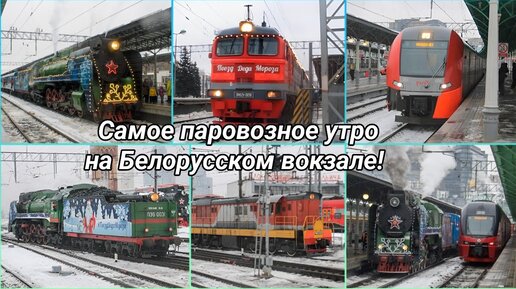 Самое паровозное утро на Белорусском вокзале! Поезд Деда Мороза в Москве!