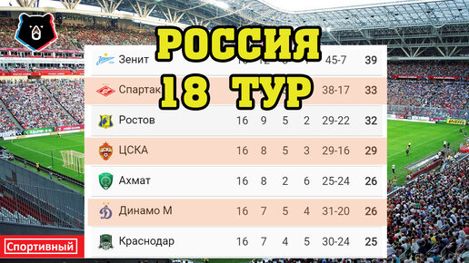 Чемпионат России по футболу (РПЛ). Результаты. Расписание. Таблица. 18 тур.