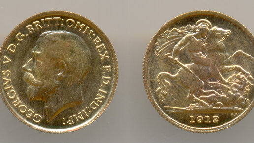 Нумизматика. Золотая монета. Англия, полфунта 1912 года, Лондон. Uncirculated.