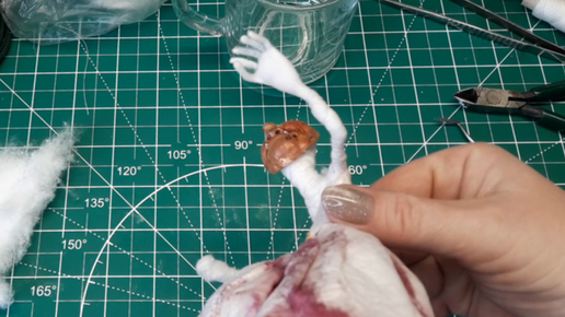 Оберег на рабочий стол - Баба Яга из ваты. Пальцы для ватной игрушки. Часть 4.