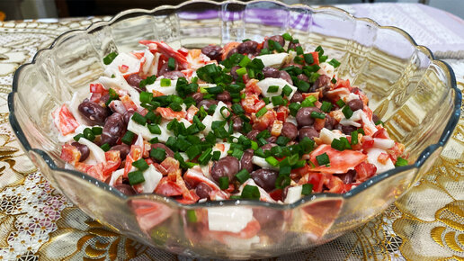 Салат за 5 минут на праздничный стол. Рецепт салата с крабовыми палочками. Быстрый салат.