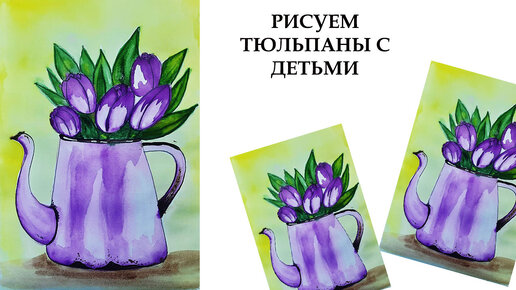 Как легко нарисовать тюльпаны. Нарисуем натюрморт с детьми. Рисунок на 8 марта.
